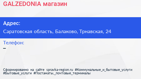 Адрес: Саратовская область, Балаково, Трнавская, 24