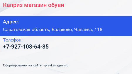 Каприз, магазин обуви по адресу Саратовская область, Балаково, Чапаева, 118 в дальнейшем Организация, размещена в следующих категориях:
