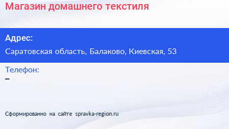 Магазин домашнего текстиля по адресу Саратовская область, Балаково, Киевская, 53 в дальнейшем Организация, размещена в следующих категориях: