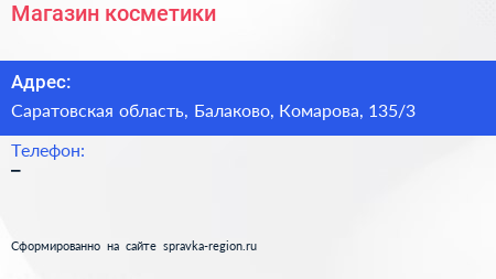 Магазин косметики по адресу Саратовская область, Балаково, Комарова, 135/3 в дальнейшем Организация, размещена в следующих категориях: