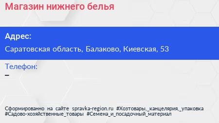 Магазин нижнего белья по адресу Саратовская область, Балаково, Киевская, 53 в дальнейшем Организация, размещена в следующих категориях:
