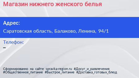 Магазин нижнего женского белья по адресу Саратовская область, Балаково, Ленина, 94/1 в дальнейшем Организация, размещена в следующих категориях: