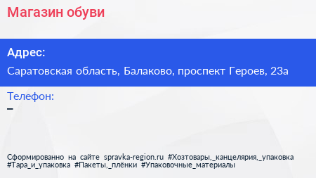 Магазин обуви по адресу Саратовская область, Балаково, проспект Героев, 23а в дальнейшем Организация, размещена в следующих категориях: