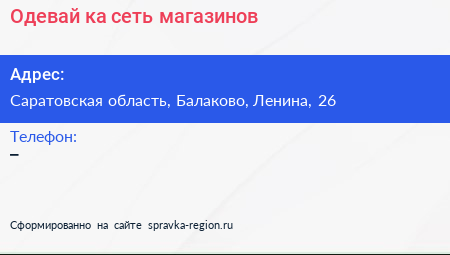 Одевай-ка, сеть магазинов по адресу Саратовская область, Балаково, Ленина, 26 в дальнейшем Организация, размещена в следующих категориях: