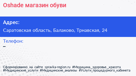 Oshade, магазин обуви по адресу Саратовская область, Балаково, Трнавская, 24 в дальнейшем Организация, размещена в следующих категориях: