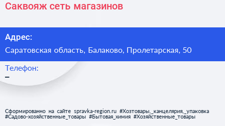 Саквояж, сеть магазинов по адресу Саратовская область, Балаково, Пролетарская, 50 в дальнейшем Организация, размещена в следующих категориях: