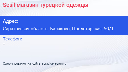 Sesil, магазин турецкой одежды по адресу Саратовская область, Балаково, Пролетарская, 50/1 в дальнейшем Организация, размещена в следующих категориях:
