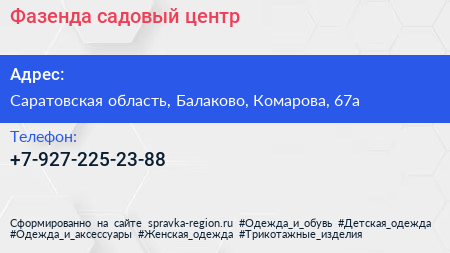 Фазенда, садовый центр по адресу Саратовская область, Балаково, Комарова, 67а в дальнейшем Организация, размещена в следующих категориях: