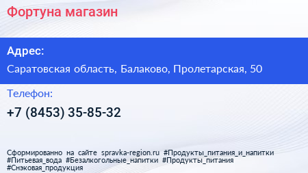 Фортуна, магазин по адресу Саратовская область, Балаково, Пролетарская, 50 в дальнейшем Организация, размещена в следующих категориях: