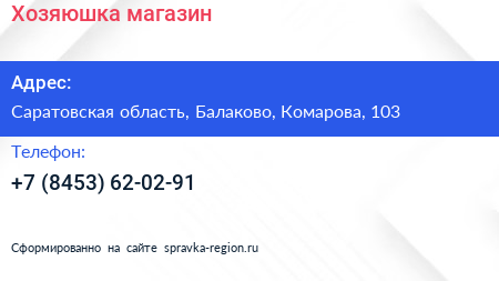 Хозяюшка, магазин по адресу Саратовская область, Балаково, Комарова, 103 в дальнейшем Организация, размещена в следующих категориях: