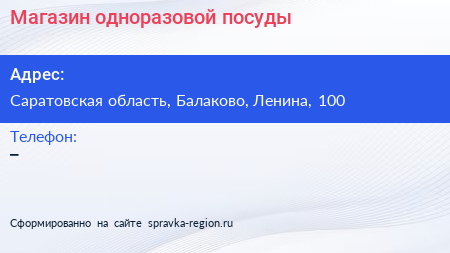 Магазин одноразовой посуды по адресу Саратовская область, Балаково, Ленина, 100 в дальнейшем Организация, размещена в следующих категориях: