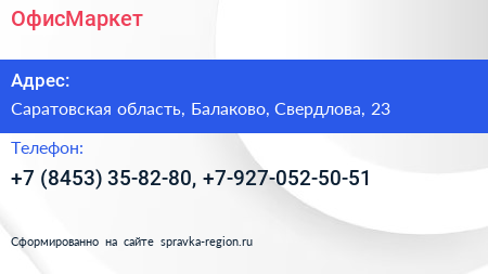 ОфисМаркет по адресу Саратовская область, Балаково, Свердлова, 23 в дальнейшем Организация, размещена в следующих категориях: