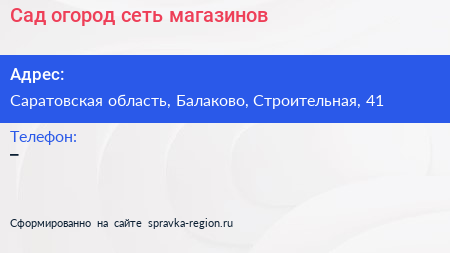 Сад-огород, сеть магазинов по адресу Саратовская область, Балаково, Строительная, 41 в дальнейшем Организация, размещена в следующих категориях: