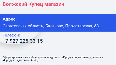 Волжский Купец, магазин по адресу Саратовская область, Балаково, Пролетарская, 63 в дальнейшем Организация, размещена в следующих категориях: