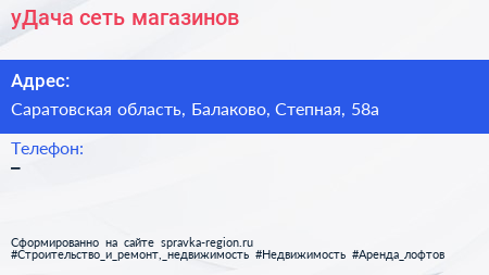 уДача, сеть магазинов по адресу Саратовская область, Балаково, Степная, 58а в дальнейшем Организация, размещена в следующих категориях: