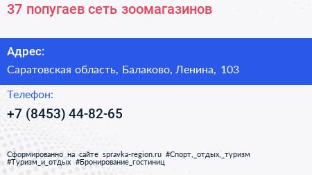 37 попугаев, сеть зоомагазинов по адресу Саратовская область, Балаково, Ленина, 103 в дальнейшем Организация, размещена в следующих категориях: