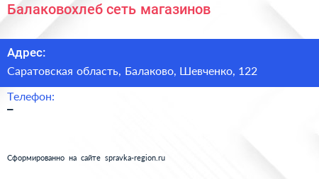 Балаковохлеб, сеть магазинов по адресу Саратовская область, Балаково, Шевченко, 122 в дальнейшем Организация, размещена в следующих категориях: