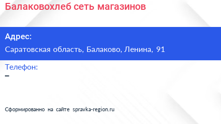 Адрес: Саратовская область, Балаково, Ленина, 91