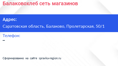 Балаковохлеб, сеть магазинов по адресу Саратовская область, Балаково, Пролетарская, 50/1 в дальнейшем Организация, размещена в следующих категориях: