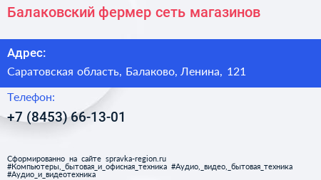 Балаковский фермер, сеть магазинов по адресу Саратовская область, Балаково, Ленина, 121 в дальнейшем Организация, размещена в следующих категориях: