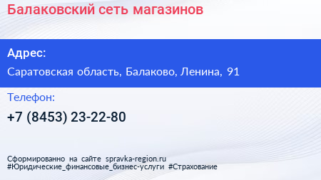 Балаковский, сеть магазинов по адресу Саратовская область, Балаково, Ленина, 91 в дальнейшем Организация, размещена в следующих категориях: