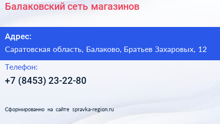 Балаковский, сеть магазинов по адресу Саратовская область, Балаково, Братьев Захаровых, 12 в дальнейшем Организация, размещена в следующих категориях: