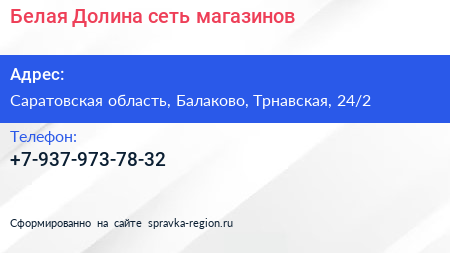 Белая Долина, сеть магазинов по адресу Саратовская область, Балаково, Трнавская, 24/2 в дальнейшем Организация, размещена в следующих категориях:
