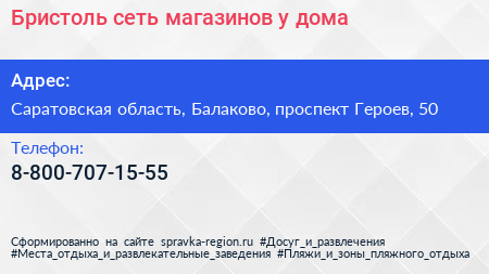 Бристоль, сеть магазинов у дома по адресу Саратовская область, Балаково, проспект Героев, 50 в дальнейшем Организация, размещена в следующих категориях: