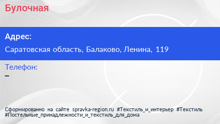 Булочная по адресу Саратовская область, Балаково, Ленина, 119 в дальнейшем Организация, размещена в следующих категориях: