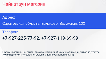 Чайнатаун, магазин по адресу Саратовская область, Балаково, Волжская, 100 в дальнейшем Организация, размещена в следующих категориях: