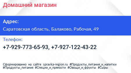 Домашний, магазин по адресу Саратовская область, Балаково, Рабочая, 49 в дальнейшем Организация, размещена в следующих категориях: