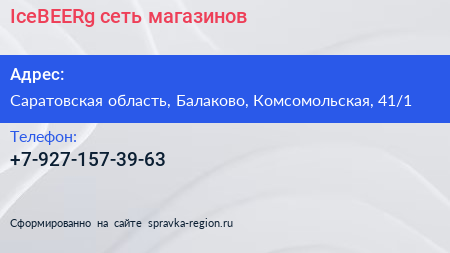IceBEERg, сеть магазинов по адресу Саратовская область, Балаково, Комсомольская, 41/1 в дальнейшем Организация, размещена в следующих категориях: