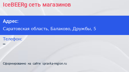 IceBEERg, сеть магазинов по адресу Саратовская область, Балаково, Дружбы, 5 в дальнейшем Организация, размещена в следующих категориях: