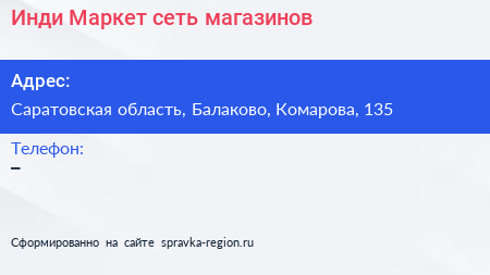 Инди Маркет, сеть магазинов по адресу Саратовская область, Балаково, Комарова, 135 в дальнейшем Организация, размещена в следующих категориях: