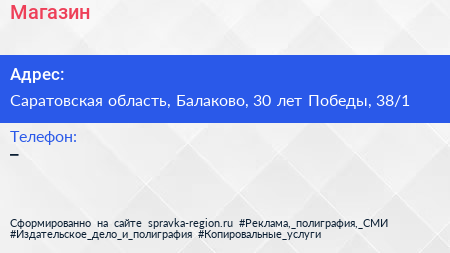 Магазин по адресу Саратовская область, Балаково, 30 лет Победы, 38/1 в дальнейшем Организация, размещена в следующих категориях: