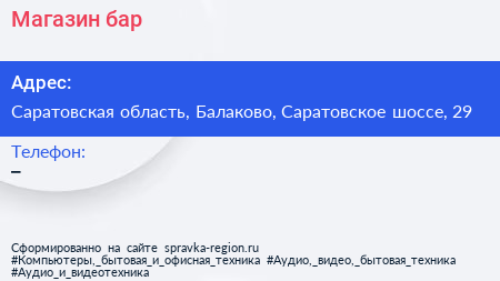 Магазин-бар по адресу Саратовская область, Балаково, Саратовское шоссе, 29 в дальнейшем Организация, размещена в следующих категориях: