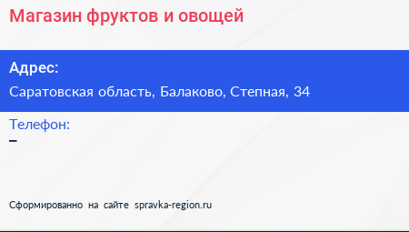 Магазин фруктов и овощей по адресу Саратовская область, Балаково, Степная, 34 в дальнейшем Организация, размещена в следующих категориях: