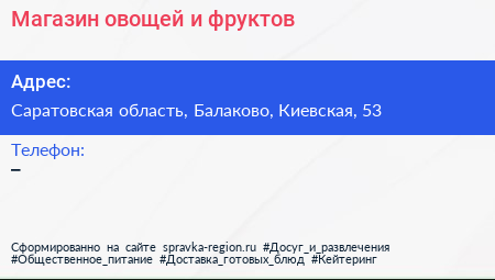 Магазин овощей и фруктов по адресу Саратовская область, Балаково, Киевская, 53 в дальнейшем Организация, размещена в следующих категориях: