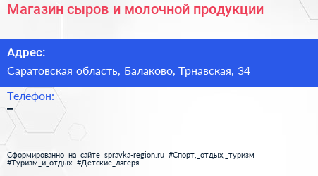 Магазин сыров и молочной продукции по адресу Саратовская область, Балаково, Трнавская, 34 в дальнейшем Организация, размещена в следующих категориях: