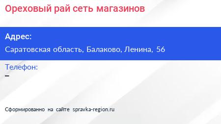 Ореховый рай, сеть магазинов по адресу Саратовская область, Балаково, Ленина, 56 в дальнейшем Организация, размещена в следующих категориях:
