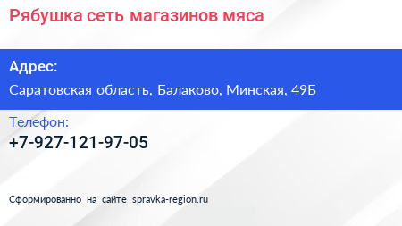 Рябушка, сеть магазинов мяса по адресу Саратовская область, Балаково, Минская, 49Б в дальнейшем Организация, размещена в следующих категориях: