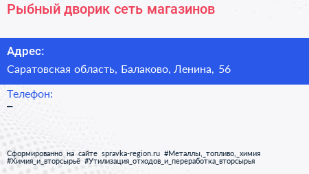 Рыбный дворик, сеть магазинов по адресу Саратовская область, Балаково, Ленина, 56 в дальнейшем Организация, размещена в следующих категориях: