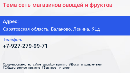 Тема, сеть магазинов овощей и фруктов по адресу Саратовская область, Балаково, Ленина, 91д в дальнейшем Организация, размещена в следующих категориях: