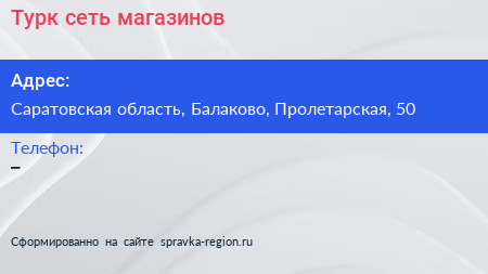 Турк, сеть магазинов по адресу Саратовская область, Балаково, Пролетарская, 50 в дальнейшем Организация, размещена в следующих категориях: