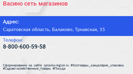 Васино, сеть магазинов по адресу Саратовская область, Балаково, Трнавская, 15 в дальнейшем Организация, размещена в следующих категориях: