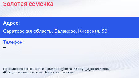 Золотая семечка по адресу Саратовская область, Балаково, Киевская, 53 в дальнейшем Организация, размещена в следующих категориях: