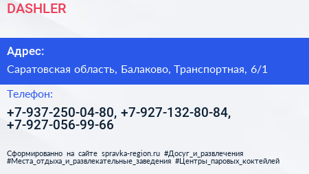 DASHLER по адресу Саратовская область, Балаково, Транспортная, 6/1 в дальнейшем Организация, размещена в следующих категориях: