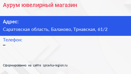 Аурум, ювелирный магазин по адресу Саратовская область, Балаково, Трнавская, 61/2 в дальнейшем Организация, размещена в следующих категориях: