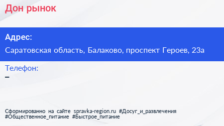 Дон, рынок по адресу Саратовская область, Балаково, проспект Героев, 23а в дальнейшем Организация, размещена в следующих категориях: