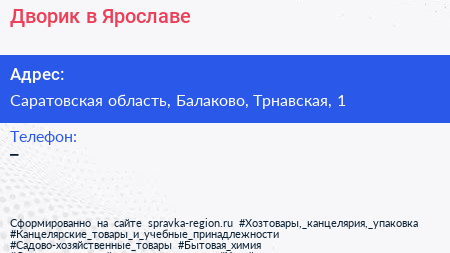 Дворик в Ярославе по адресу Саратовская область, Балаково, Трнавская, 1 в дальнейшем Организация, размещена в следующих категориях: